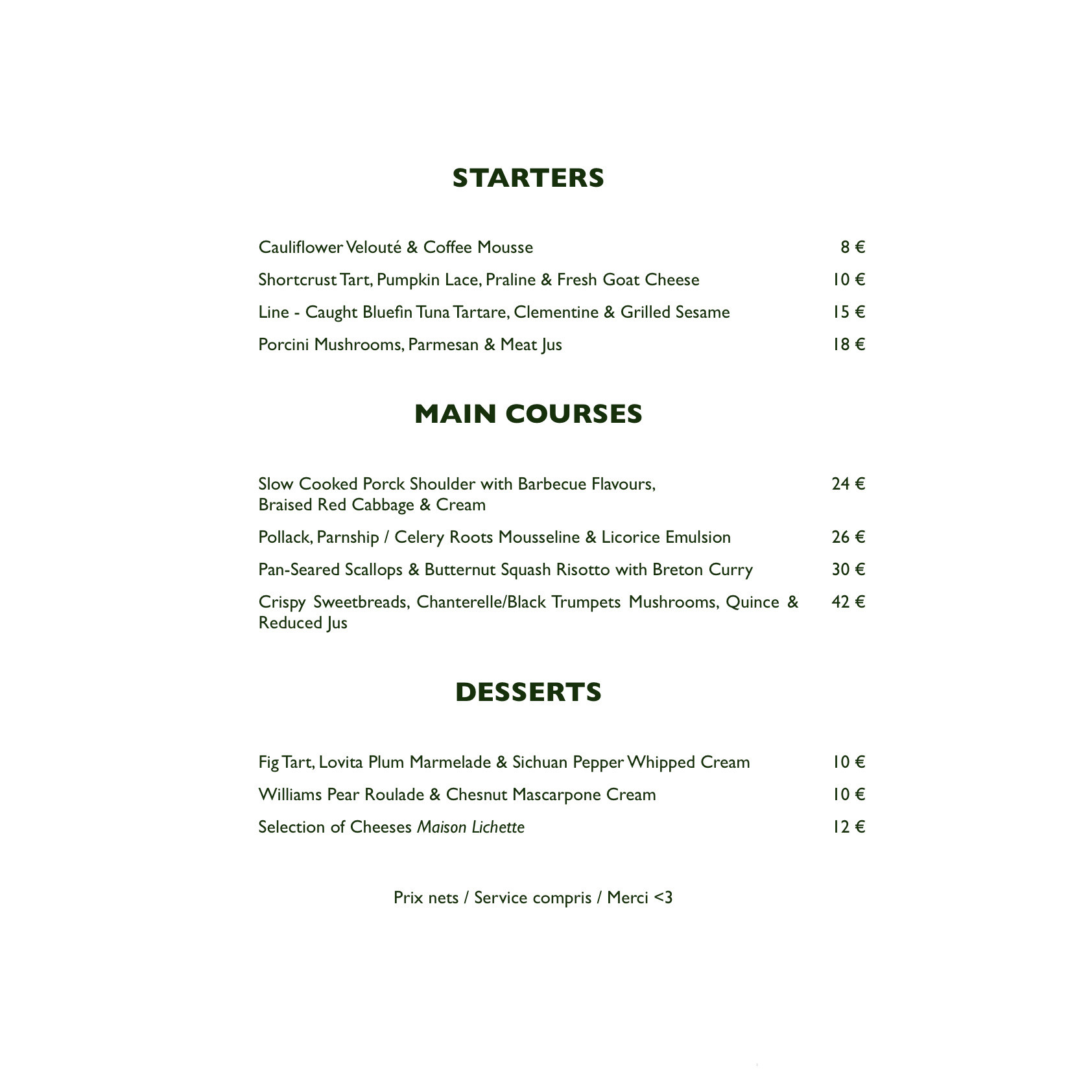 The entire CulSec Bistrot team is delighted to unveil our menu: